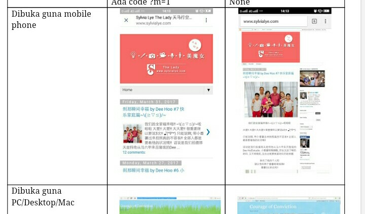 Ada yang baca guna laptop opis, pc opis, sambil buat kerja hehehe. Kalau kita share link / url artikel blog tu tanpa ?m=1, ianya adalah ideal bagi pembaca yang gunakan mobile device mahupun desktop.